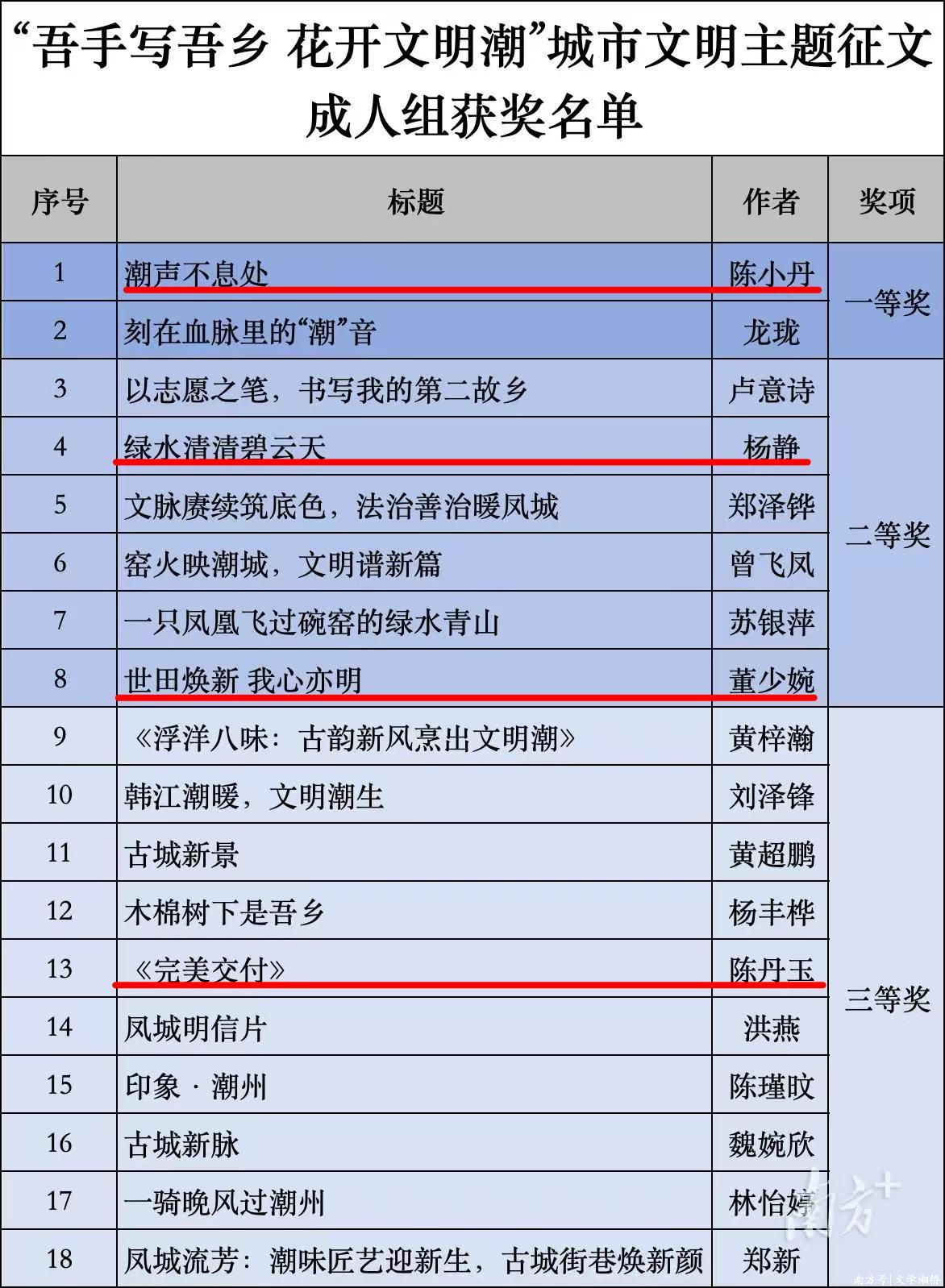湘桥文苑,花开繁盛。在“吾手写吾乡 花开文明潮”城市文明主题征文活动中,湘桥作协四位会员作品脱颖而出,荣获佳绩: